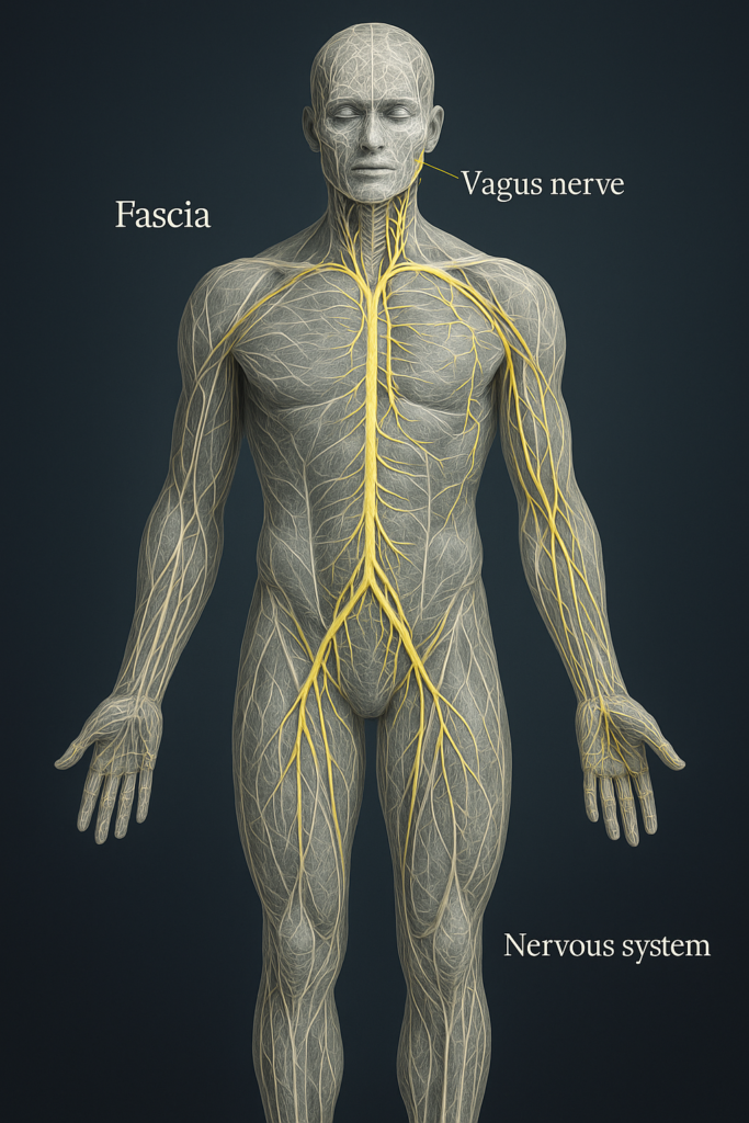 Nervesystemet er vævet gennem det fasciale netværk og modtager konstant sensorisk input fra fascien i form af mekaniske påvirkninger, spænding, tryk og bevægelse, heraf neurale mønstre der dannet gennem tænkning og føletilstanden (parapsykologisk læring). Denne bindevævsmatrix er blandt kroppens tættest innerverede væv, hvilket betyder, at den spiller en central rolle i reguleringen af kropslig oplevelse, bevægelse og følelsesmæssig tilstand (Stecco et al., 2018).